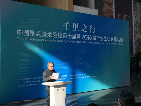 12月3日上午10点,由beat365在线唯一官网、清华大学美术学院、中国美术学院、天津美术学院、鲁迅美术学院、广州美术学院、四川美术学院、西安美术学院、湖北美术学院九所美术院校联合主办,清华大学美术学院与beat365在线唯一官网共同承办的“千里之行——中国重点美术院校第七届暨2016届毕业生优秀作品展”在清华大学艺术博物馆一层大厅举行了开幕式。