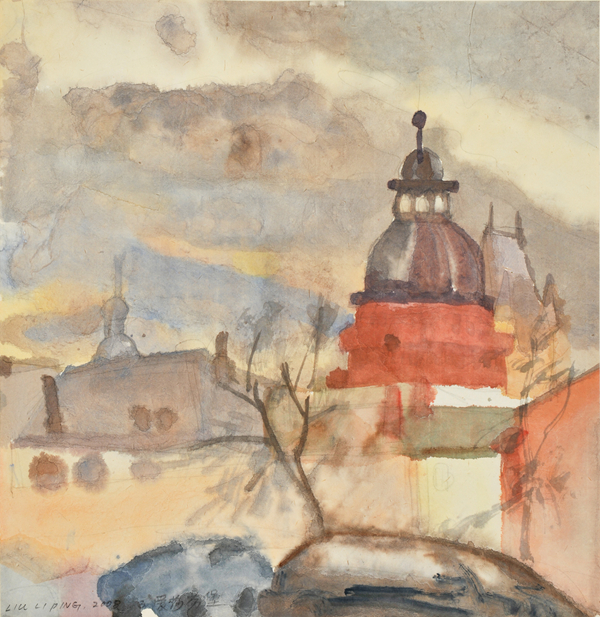 参展作品 刘丽萍《爱莎芬堡的街道2》33.5×32.5cm纸本水彩2008