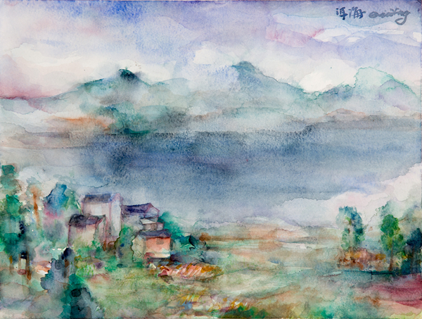 参展作品 章燕紫《隐隐》40×40cm纸本水彩2015