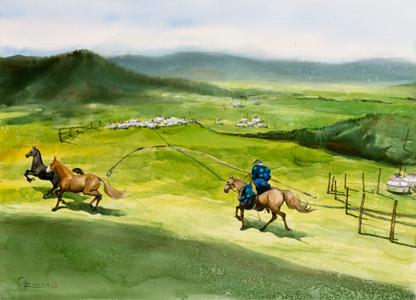 参展作品 车贵智《套马杆》56×76cm纸本水彩2016