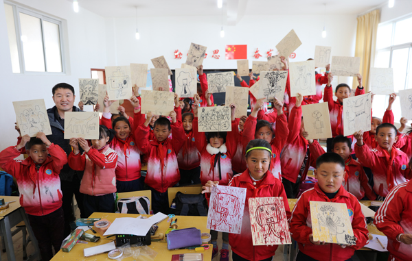教学团队在剑川举办了主题课程优秀作品联合展,把爱心、激励、祝愿带到剑川,以孩子的视角,发现家乡的美,发现友爱、美好、未来,通过手中的画笔展现出自己的未来,描绘出的壮丽世界和美丽人生,点燃艺术的梦想。同时教学团队为剑川县的师生捐赠了美育教育的相关书籍和画材。