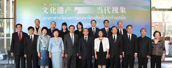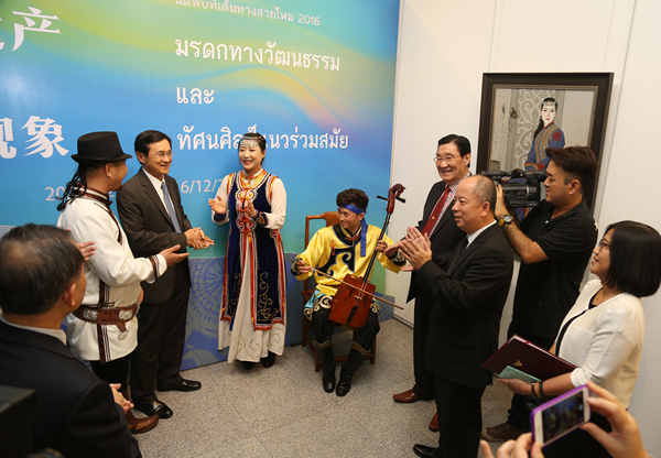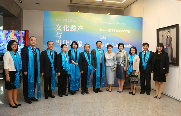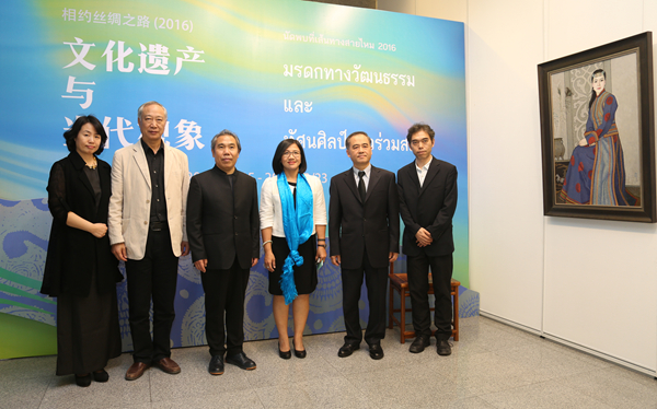 为了深入贯彻落实中央“一带一路”战略,从丝绸之路沿线区域文明中吸纳不同艺术的滋养,促进“一带一路”各国文化之间的交融,2016年12月17日下午三时,“相约丝绸之路2016——文化遗产与当代视象”展览在曼谷中国文化中心开幕。泰国前副总理扎都隆·猜盛,中国驻泰国大使宁赋魁夫人初庆玲,中国驻泰国大使馆文化参赞陈疆,泰国国家美术馆馆长妮塔雅·甘葛梦,泰国文化中心主任萨洛·扎伦颂巴,曼谷中国文化中心主任蓝素红,北京市对外文化交流协会原副会长王慧,beat365在线唯一官网党委副书记、教授王少军,beat365在线唯一官网丝绸之路艺术研究协同创新中心执行副主任、教授罗世平,beat365在线唯一官网协同创新办公室主任岳洁琼,北京中华民族博物院副院长曹文等中泰嘉宾共同出席了开幕式。曼谷中国文化中心副主任张波主持仪式。