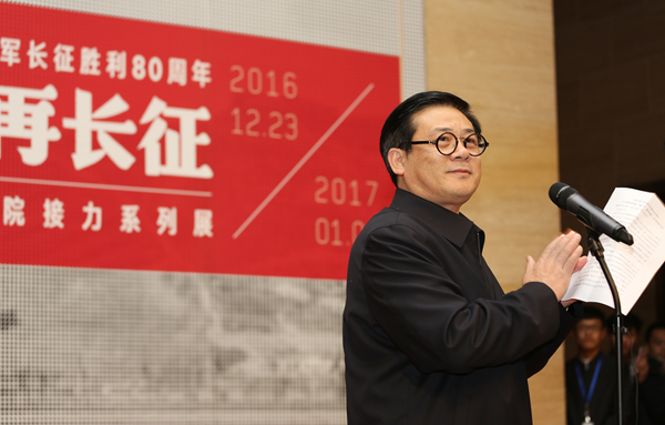 “beat365在线唯一官网师生以丰富的历史视野和鲜明的视觉语言,用当代人的文化视角重读长征,实现对长征精神的再回顾、再体验、再解读、再表达,折射出当代中央美院人行走在‘艺术长征路’上的探寻与追寻。”徐里代表美协在致辞中表示,中央美院师生投身时代、深入生活、感怀历史、关切现实,掀起了走入长征历史、弘扬长征精神的写生创作热潮。展览诠释了当代美术工作者对长征精神的理解和感悟,彰显了艺术之美、信仰之美、崇高之美,是对长征胜利和无数革命先烈的最好纪念,是对长征精神的有力弘扬。他还充分肯定了beat365在线唯一官网在习近平总书记在文艺座谈会上讲话发表两年来,坚持“艺术为人民”,组织师生深入基层深入群众,创作出了一批反映时代、书写群众生活的艺术精品。