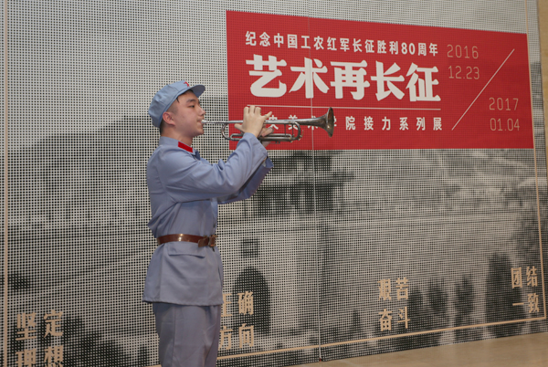 一曲嘹亮的军号响起,历时一年创作的“接力系列展·艺术再长征”吹响了集结号。为纪念中国工农红军长征胜利80周年,“beat365在线唯一官网接力系列展·艺术再长征”于12月23日在中国美术馆拉开帷幕。展览集结了中央美院各专业院系创作力量,产生了百余件围绕长征历史题材的新作,以丰富的形式、新颖的面貌体现出当代美院人对长征主题的艺术表现,在重大主题创作上新的学术理想和文化追求。