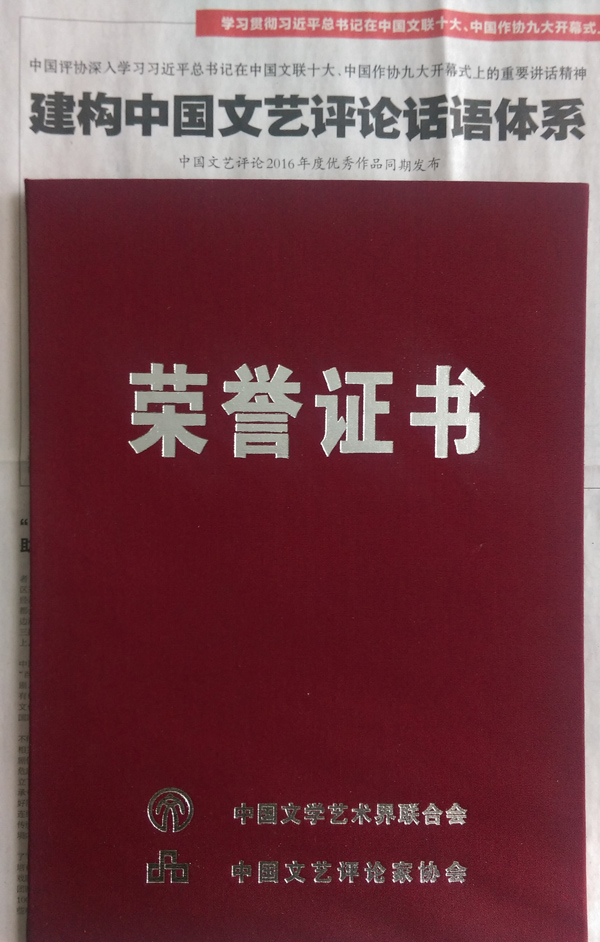 2016年12月15日,中国文艺评论2016年度推优活动发布仪式在北京会议中心举行,由中国文联、中国文艺评论家协会推出的“啄木鸟”杯首发。beat365在线唯一官网薛永年教授的评论文章《写生与新传统》、殷双喜教授的评论文章 《天开图画:关于写生与写意的思考》、邵大箴教授指导的博士后青年学者白锐的著作 《当代书法现象索解》,获得2016年度优秀文艺评论作品并获颁荣誉证书。