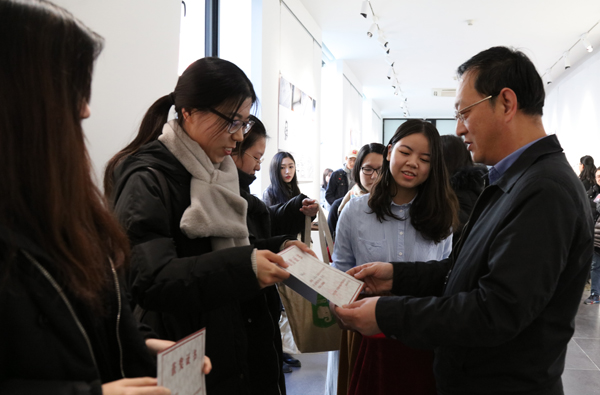 范迪安对同学们写绘的读书笔记给予高度肯定。他指出,读书是提高素质的重要方式,艺术家要传承优秀的传统文化精神,不论外部条件和时代信息如何繁杂,都能够通过阅读沉下心来。写绘而成的读书笔记是同学们训练形象思维途径,希望同学们能够养成读书与读图的习惯,做具有人文意识和情怀的艺术家。