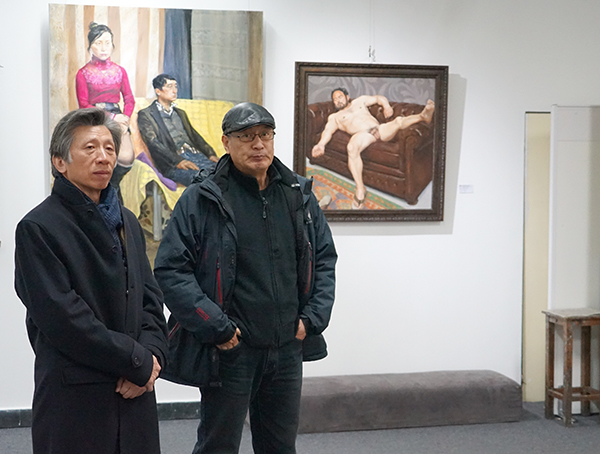 2017年1月6日,“油画系第十三届画室开放日”颁奖仪式举行,图为范迪安院长参观获奖作品