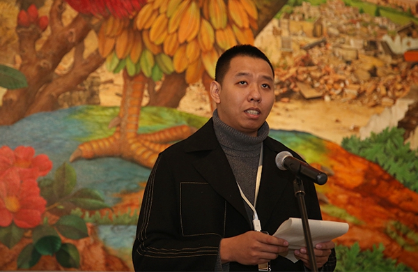 中国美术学院跨媒体艺术学院教师宋戈文作为参展学生代表进行发言。他通过近日的布展经历,认为此次参展的作品有两个特点——新:每个作品都有体现各自特有的精神面貌,大家所使用的材料,表达方式以及艺术语言都是丰富多彩的,而且在很大程度上是有所创新和突破的;思:在创作的基础上对于记忆的不断锤炼和提取,或者采用的跨学科跨媒介的综合运用方式,各有所需各有所找的特殊创作方法体现了创作者们丰富的精神面貌。