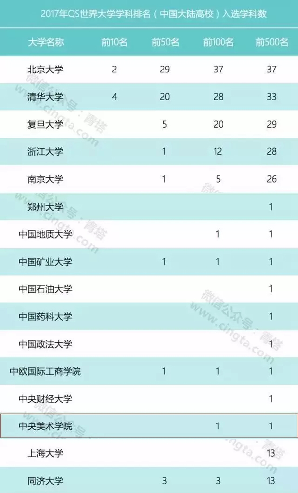 2017年QS世界大学学科排行榜 beat365为中国大陆地区唯一一所入选艺术类高校