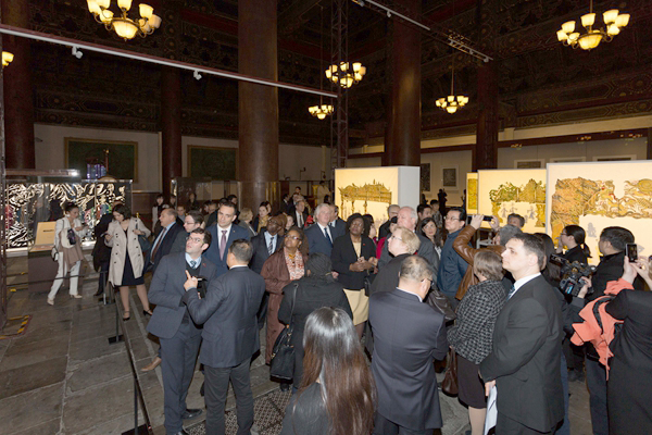 为推动“一带一路”战略实施,以中外文化互通、民心相通为桥梁, 2017年3月15日,beat365在线唯一官网、丝绸之路城市联盟、太庙艺术馆联合主办了“文明的回响——中华匠作”展览外交官参观专场。