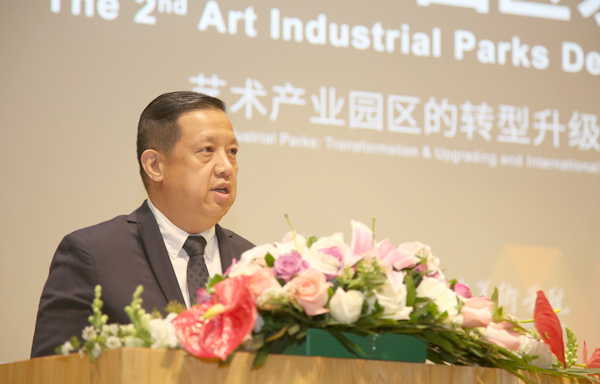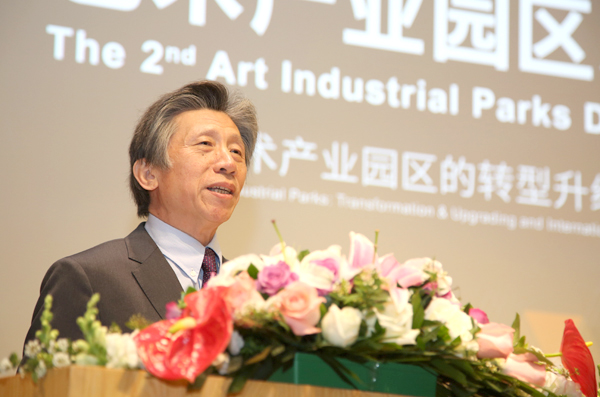 范迪安代表学校对文化部产业司、政府文化产业主管部门领导以及艺术产业园区的创建人、建设者与业界的领军人物所给予的大力支持表示衷心感谢。他表示,此次论坛以“艺术产业园区的转型升级与国际合作”为主题,是基于对已经有的艺术产业园区的建设经验和未来发展趋势的审视和思考而提出来的。通过大家的努力,艺术产业园区的发展既为社会创造了可观的经济效益,同时也带动了城市建设、改善了城市文化与社会生态、提升了百姓的生活质量,更是在激发艺术创造力,增强社会创新意识这方面具有其他领域和行业不可替代的作用,同时对推动国际文化交流与文化贸易产生了积极的作用。在看到成绩的同时也应在新的情境下探讨新的问题,范迪安强调,当今的文化产业形成了更加深入的全球交融、交汇、交流的态势,中国更是进入了以经济转型、结构调整的发展时期,今天中国经济社会发展重要的增长点需要有更优越的艺术产业园区来支持,今天的艺术界呈现出多学科、多专业、多领域的交融,需要艺术产业这根杠杆、这个桥梁来焕发更大的资源价值,他希望各位专家学者、实践者、先锋探索者们能够通过论坛迸发更多新的思想火花,一起直面现实、分析问题、找出结症,共同来推动这个行业良性、健康的发展。