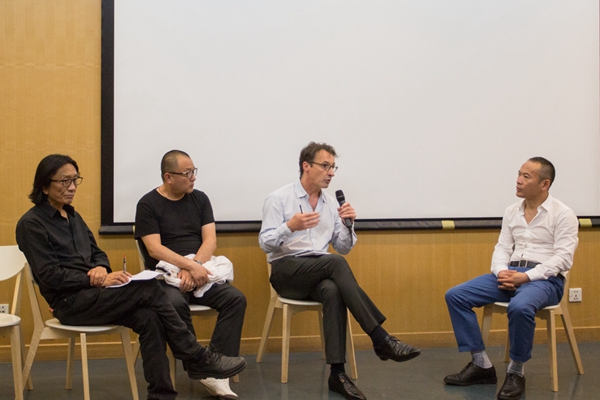 苏新平教授、王小帅导演、策展人菲利普-阿兰•米肖与张尕教授座谈