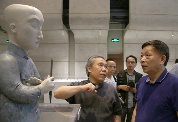 中国美术馆副馆长张子康致辞。他谈到,王少軍始终是在对话当中来进行他对艺术的思考和创作。他有自己独特的创作理念,塑造的“角儿”充满着中国人文气息,其造型让人产生一种思考和联想,推动观众跟社会、跟他人对话。展览名为“真的是我”,旨在“真的是我。”或“真的是我吗?”之间不断产生询问,其本身也是艺术家在创作当中的不断探讨和思考,也引发了我们对未来雕塑创作的思考。