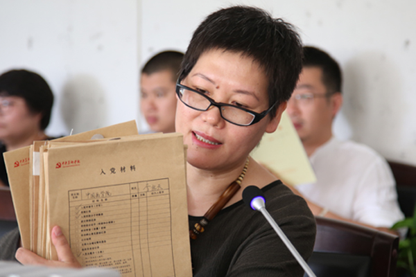 中国画学院党总支副书记王秀玲介绍工作经验