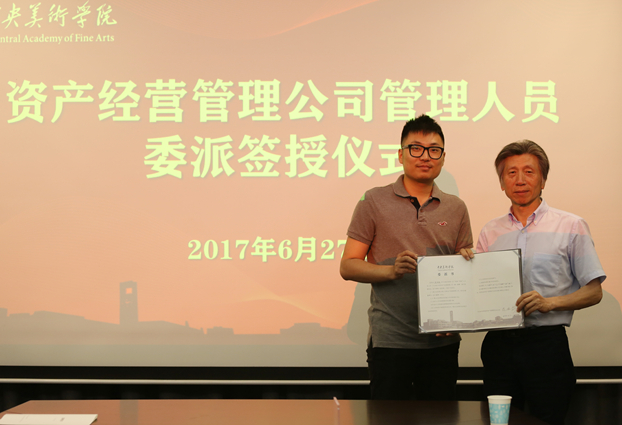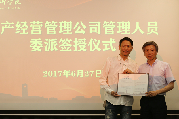 委派仪式上,范迪安院长对资产经营管理公司管理层提出了三点期望,一是做好学科成果转化,为学校创造新的业绩;二是把握时代脉搏在改革中寻找机会、抓住机遇、大胆开拓,把校办企业做大做强;三是在企业运营过程中严格制定执行相关规章制度。