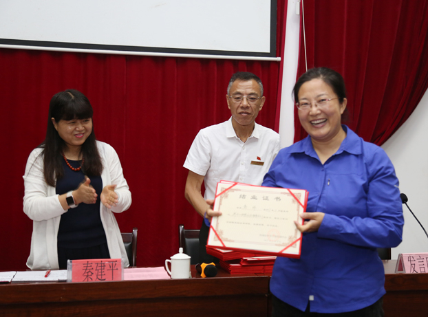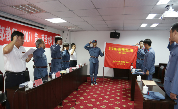 开班仪式上党委副书记王少军向培训班代表授班旗