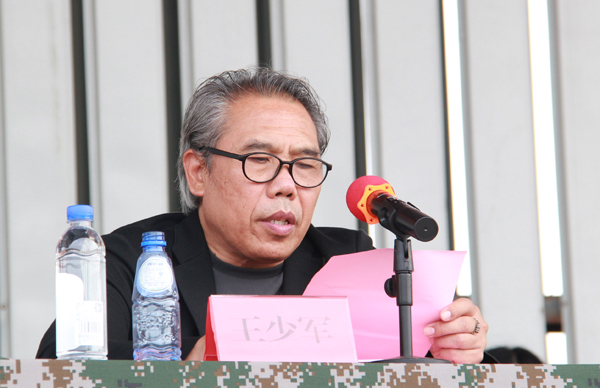 王少军在开营仪式上勉励同学们在军训中要自觉营造“比学赶帮”的氛围,严于律己、顽强拼搏,以坚忍不拔的意志和吃苦耐劳的精神,战胜自我、超越自我。学习人民解放军特别能吃苦、特别能战斗、特别守纪律、特别讲奉献的优良传统,让部队纪律和作风在同学们心中生根发芽,成为伴随一生学习成长的宝贵财富。牢记美院“尽精微、致广大”的精神,用辛勤的汗水浇灌出丰硕的果实,期待同学们在15号的结营仪式上有优异的表现,向教官、老师和同学们自己交上一份满意的答卷。