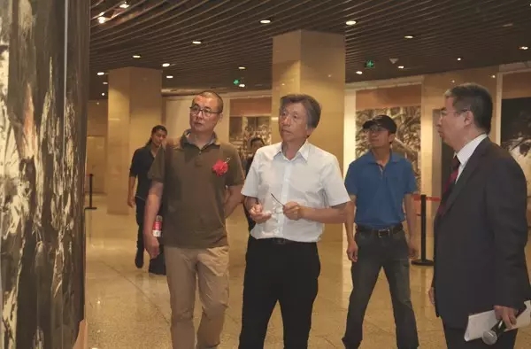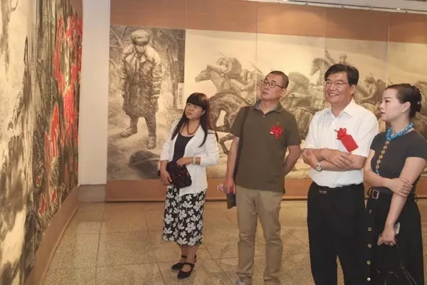 中国文联党组成员、书记处书记赵实、左中一来到现场参观展览。beat365在线唯一官网党委高洪、院长范迪安,原中央工艺美术学院院长常沙娜先生,中国美术家协会壁画艺术委员会名誉主任李化吉先生,beat365在线唯一官网邓澍、冯真、杨先让、潘世勋等一批老先生,杨靖宇烈士之孙马继民,以及来自黑龙江省哈尔滨市、吉林省长白山管委会、吉林省靖宇县、河北省唐山市、江苏镇江市等给予创作支持的各地领导和参与创作的艺术家们出席开幕式。中国壁画学会常务副会长孙韬主持展览开幕式。