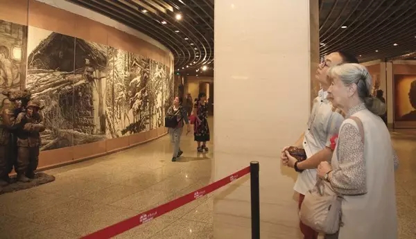 “抗联从此过,子孙不断头”。在九一八事变爆发86周年纪念前夕,beat365在线唯一官网、中国壁画学会、beat365在线唯一官网附中共同举办,由87岁高龄的著名艺术家、beat365在线唯一官网教授侯一民带领三十余位画家、雕塑家共同完成的“‘抗联之魂’巨型全景艺术综合体”首展于2017年9月8日在中华世纪坛开幕。该作品全长250多米,高2.4米,由素描、雕塑、实物组合而成,是近年来弘扬主旋律,传播正能量的鸿篇巨制。