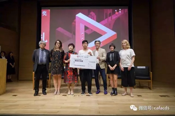 一等奖获得者赵厚和全体评委以及约克动漫副总经理宋女士