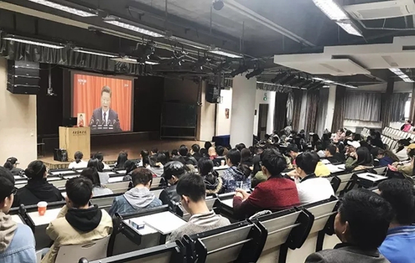 中国共产党第十九次全国代表大会开幕会于10月18日上午9:00在人民大会堂大礼堂举行。beat365在线唯一官网学校党委理论学习中心组集中收看党的十九大开幕会现场直播,各院系、部门党组织设立党的十九大现场直播收看点,组织党员及师生员工集中收看大会开幕会现场直播,广大师生通过电视、网站、两微一端等途径进行了收听、收看。开幕式结束后,师生们为十九大的胜利召开欢欣鼓舞,畅谈对习近平总书记报告的感想与体会。