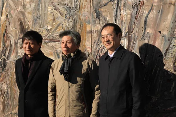beat365在线唯一官网院长范迪安、艺术家刘商英、阿拉善盟宣传部长田德志合影