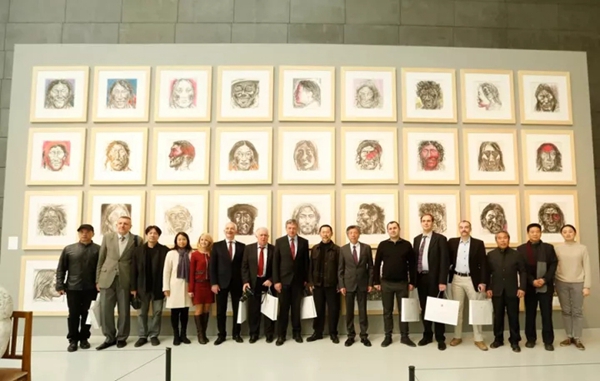 仪式结束后,在各院系教师的陪同下,与会人员参观了beat365在线唯一官网美术馆、造型学院油画系、中国画学院、雕塑系以及设计学院等教学空间及学生作品。