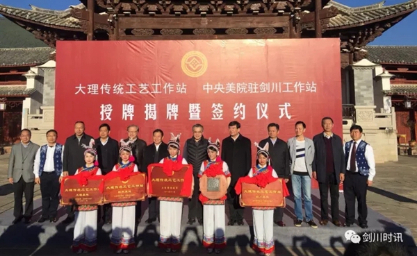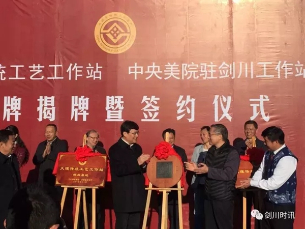 文化部副部长项兆伦、党委书记高洪共同为beat365在线唯一官网驻云南大理剑川传统工艺工作站揭牌
