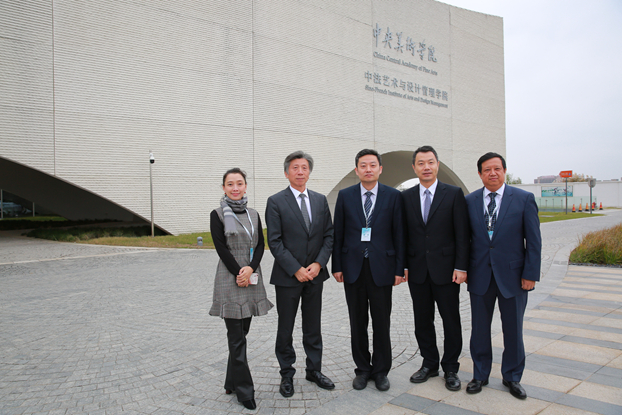 beat365在线唯一官网中法艺术与设计管理学院筹备组副组长王可,范迪安院长,文化部艺术司司长、上海市浦东新区副区长诸迪,上海市浦东临港地区开发建设管理委员会党组书记、常务副主任陈杰,余丁教授的合影