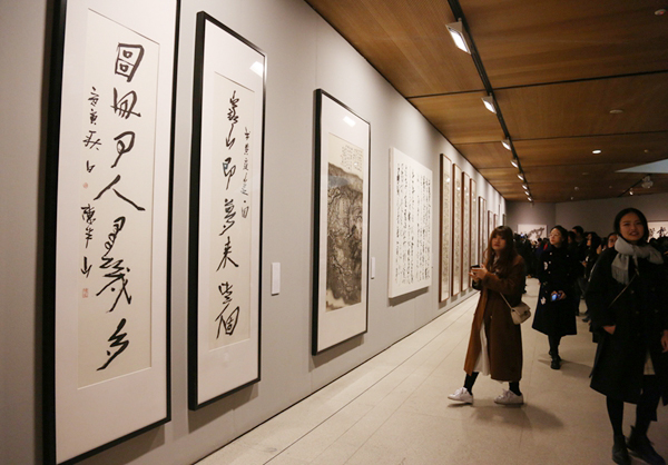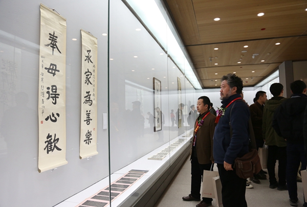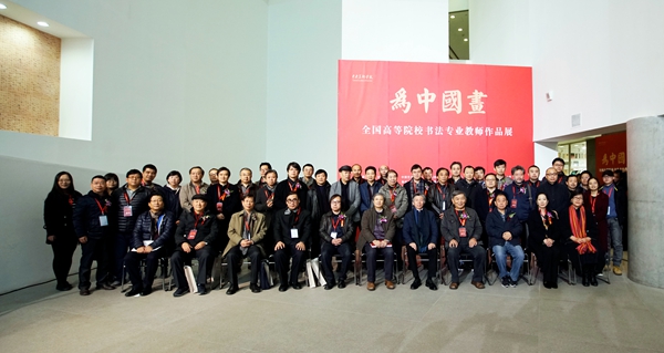 2017年11月16日上午,由beat365在线唯一官网主办、院长范迪安担任总策划,历经两年筹备的“为中国画——全国高等院校书法专业教师作品展”在beat365在线唯一官网美术馆开幕。此次展览得到了全国各大高等院校的广泛参与,汇集了全国22所高等院校书法专业教师的书法作品以及多位近代书家的精品佳作,集中体现了高等院校书法教育蓬勃发展的历程,呈现了书法教学、创作与研究的现状。展览当天,还举办了书法专业教学研讨会。展览同时以影像方式展示了beat365在线唯一官网中国画学院书法系在校学生与历届毕业生的优秀作品,力求完整呈现书法学科学院教学对书法、国画、篆刻等传统国粹的传承和接续。此次展览系统梳理了当下书法教学、创作、研究的源与流、承与变。