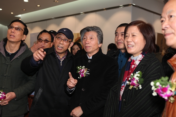 范迪安院长与安徽省文联党组书记、书记处第一书记何颖一同观看展览