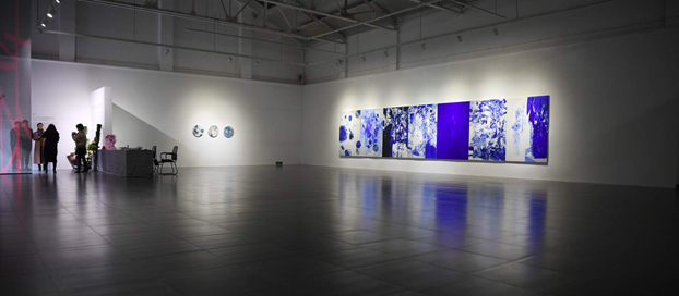 张从云的作品集中展示了其近年来的创作和艺术探索,他以西画媒材创作,兼取中国传统绘画意境,在看似不经意地涂抹挥洒间心境毕现。其作品中易于辨识的物象和传统绘画图式并非简单的再现与挪用,而是他内心意境的一种景观映射,作品从容淡然,淸逸洒脱如行云流水,抱朴至真。康蕾的作品分不同系列,强烈的色彩表现力和作品的隐喻性是她的艺术特点,此次展出也是她近年来的重要作品《青蓝系列》,作品以相对含蓄的表达方式,呈现出一种节制的审美体验,整个展厅中作品感觉泾渭分明,蓝色部分都是康蕾的作品,单纯而丰富,冷静克制与感性充分结合,画面弥漫出平静的张力,对个体的细微体察与感知使其作品细节和层次丰富耐看。