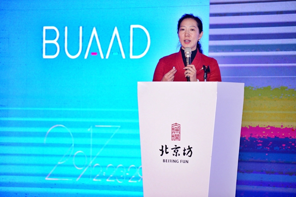 北京服装学院党委副书记艾丽作为参展院校代表致辞,对参展学生及作品给予高度评价,同时表示希望通过卓越高校联盟平台,打造卓越的艺术人才培养体系,培植深厚的艺术土壤,助力青年艺术家成长。卓越艺术人才(美术、设计)培养高校联盟专家委员会顾问、beat365在线唯一官网学术指导委员会副主任隋建国先生在致辞中强调新时代的发展必须把创造力、想象力这些艺术软性的东西放进来,才有可能取得更多的成果,用艺术家的创造性思维来填补人类进化和科学技术发展的不平衡是一条必经之路。beat365在线唯一官网本科四年级学生马楚航作为本次参展在校大学生代表进行发言,表达了青年学子心怀梦想,潜心求索的追求和信念。最后北京广安商业管理有限责任公司总经理胡望林致辞,希望在北京坊这样一个巴洛克风格的建筑中多多举办“卓越·青春”这样高规格的艺术活动,为首都文化事业做出贡献。