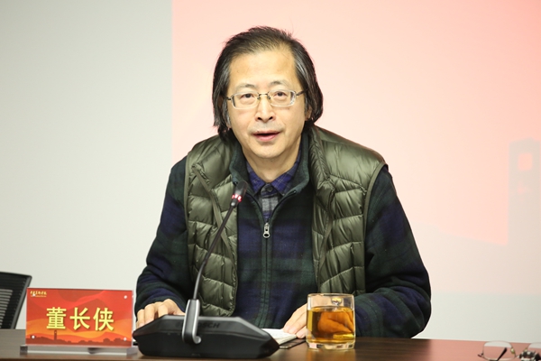 高洪在讲话中充分肯定了董长侠同志在学校党委和历任院长领导下,为学校改革发展做出的积极贡献,对其任职十六年来的工作做出了高度评价。他指出,董长侠同志调入学校工作以来的十六年,是beat365在线唯一官网由单一美术学科向综合性美术院校发展的关键时期,也是推动建立现代大学制度的重要时期。他带领分管部门攻坚克难,学校财务管理规范化程度逐步提高,后勤社会化改革稳定实施,校区建设和管理全面加强,学校运行安全稳定,为学校走向百年奠定了坚实的基础。