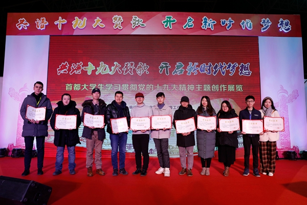 1月4日,由中共北京市教育工作委员会、北京市教育委员会主办的“共谱十九大赞歌开启新时代梦想”---首都大学生学习贯彻党的十九大精神主题创作展开幕暨颁奖仪式,在北京理工大学体育馆内举行。