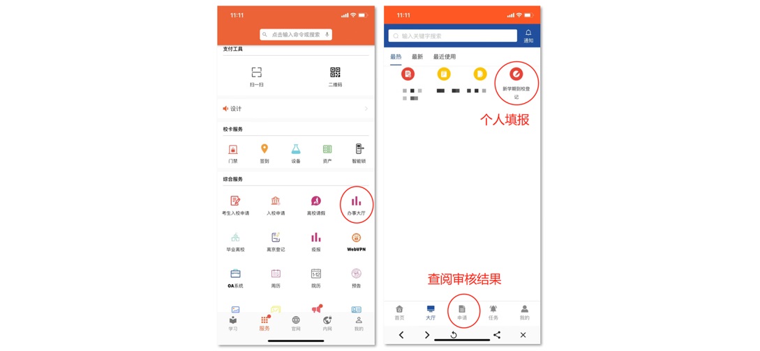 新生确定入校行程后,通过校园APP—“办事大厅”—“新学期到校登记”板块填报行程信息,签署《beat365在线唯一官网学生身体健康安全承诺书》,以备学校审核。返校信息审核通过后,学生在抵达校门时向门卫出示审核结果(校园APP—“办事大厅”—下方“申请”—“已完成”—“新学期到校登记”—查看表单)。为保证健康码、行程码时效性,请新生在返校日前2日内登录APP填报(如9月14日返校,可在9月12日或13日填报,系统开放时间为每天8:00—17:00)。