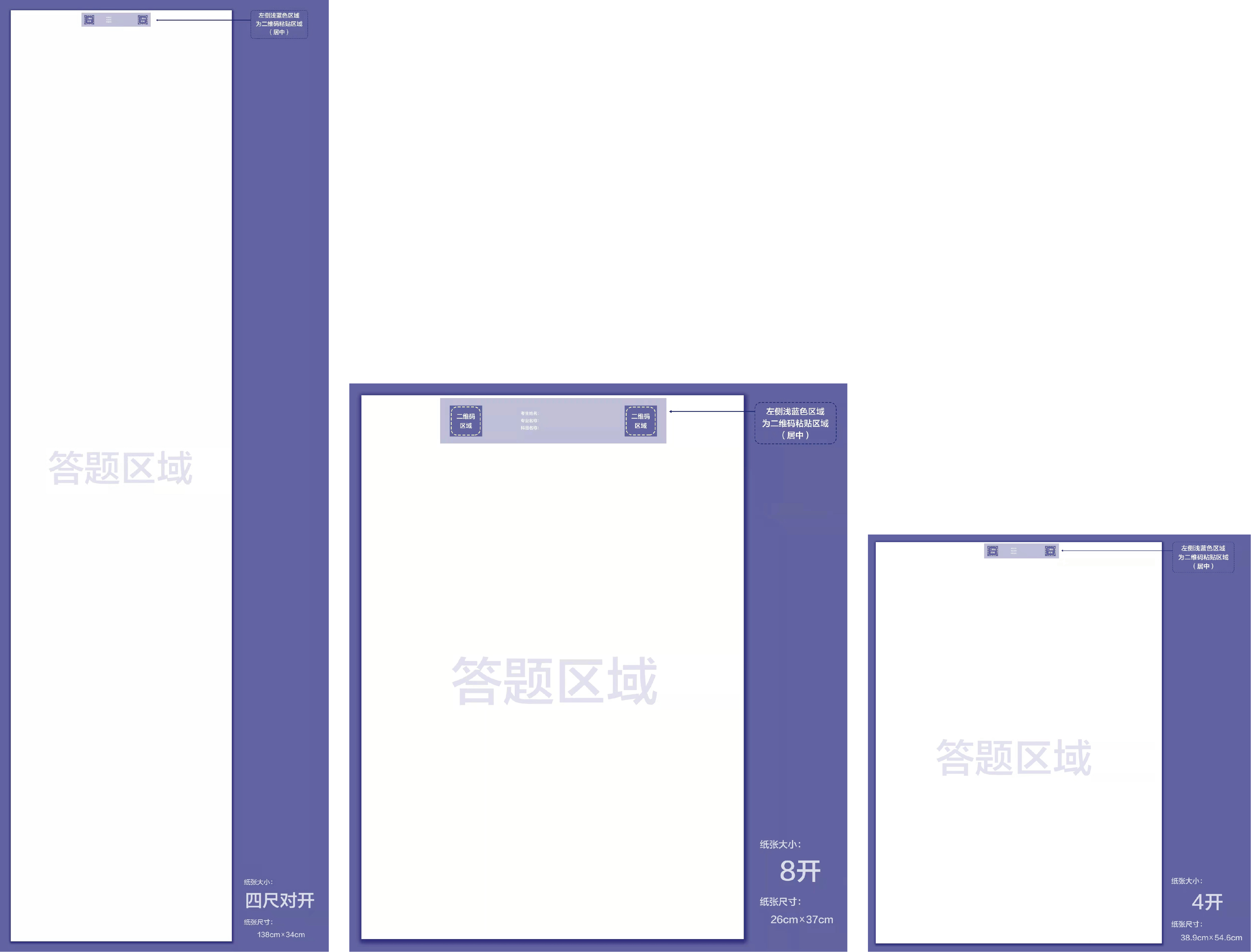 考生须于正式考试当日考生报到环节,在视频监控下根据语音指令将准考证第三联中的考生信息二维码沿虚线框整体剪下,使用胶棒或双面胶将其粘贴于试卷卷头中间位置完成试卷制作。考生信息二维码粘贴示意图如下: