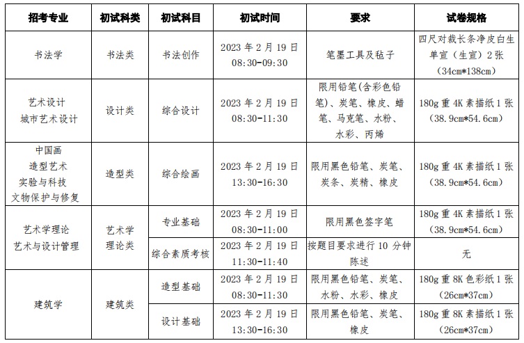 初试各专业考试用纸及包装由考生在考前自行准备。