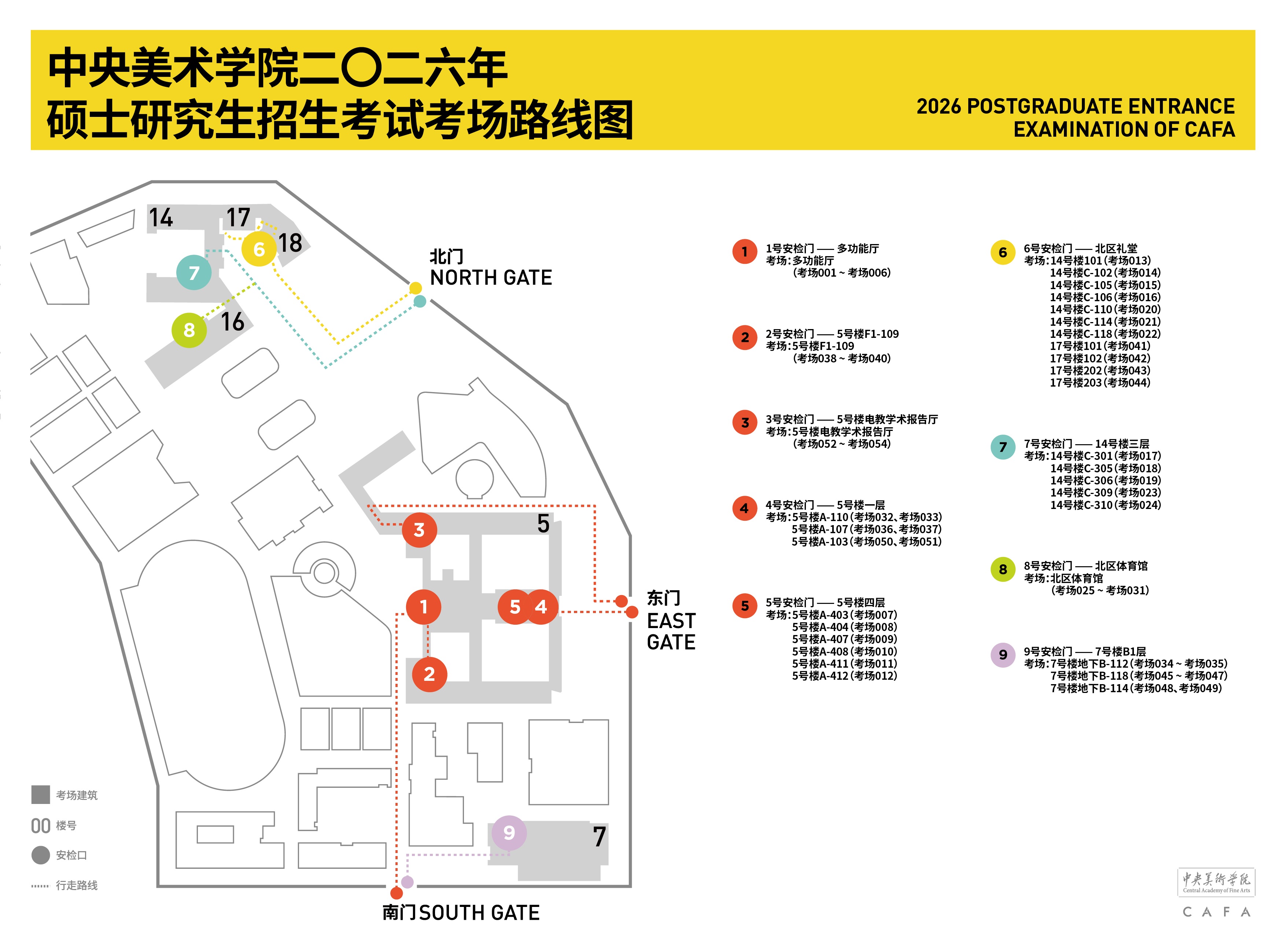 2026年全国硕士研究生招生考试将于2025年12月20日-21日进行。beat365在线唯一官网考点(代码1147)考场分布在北区体育馆、14号楼3层、14号楼一层C段教室及17号楼、5号楼A段一层、5号楼A段四层、5号楼电教学术报告厅、5号楼多功能厅、5号楼F1-109,7号楼地下一层共九个区域。根据国家组考相关要求,beat365将在考试期间对上述区域进行封闭管理。每个区域均配备人脸识别仪、智能安检门和存包柜。请考生务必看清准考证上的考试地点,切勿走错考场,贻误考试。