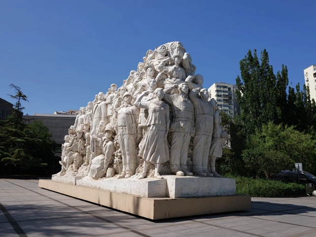 于英杰书记一行先后参观校史馆、美术馆,透过珍贵史料与艺术作品,全面了解学校百年办学历史、科研创作与育人成果。随后,于英杰书记驻足观看中央美院为迎接中国共产党建党百年创作的大型雕塑作品《信仰》。雕塑系主任张伟详细介绍了作品的构思立意、构图语言、主题内核及创作思路。